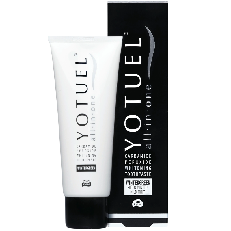 YOTUEL All In One to luksusowa pasta wybielająca do codziennego stosowania, stworzona na bazie ponad 10 lat badań i innowacyjnych technologii stomatologicznych. Jej unikalna formuła łączy skuteczne wybielanie z regeneracją szkliwa i ochroną przed próchnicą – bez ryzyka uszkodzeń czy nadwrażliwości. Dzięki zawartości naturalnych enzymów, ksylitolu oraz fluoru, pasta usuwa przebarwienia bez mechanicznego ścierania zębów, czyniąc codzienną pielęgnację bezpieczną i skuteczną.