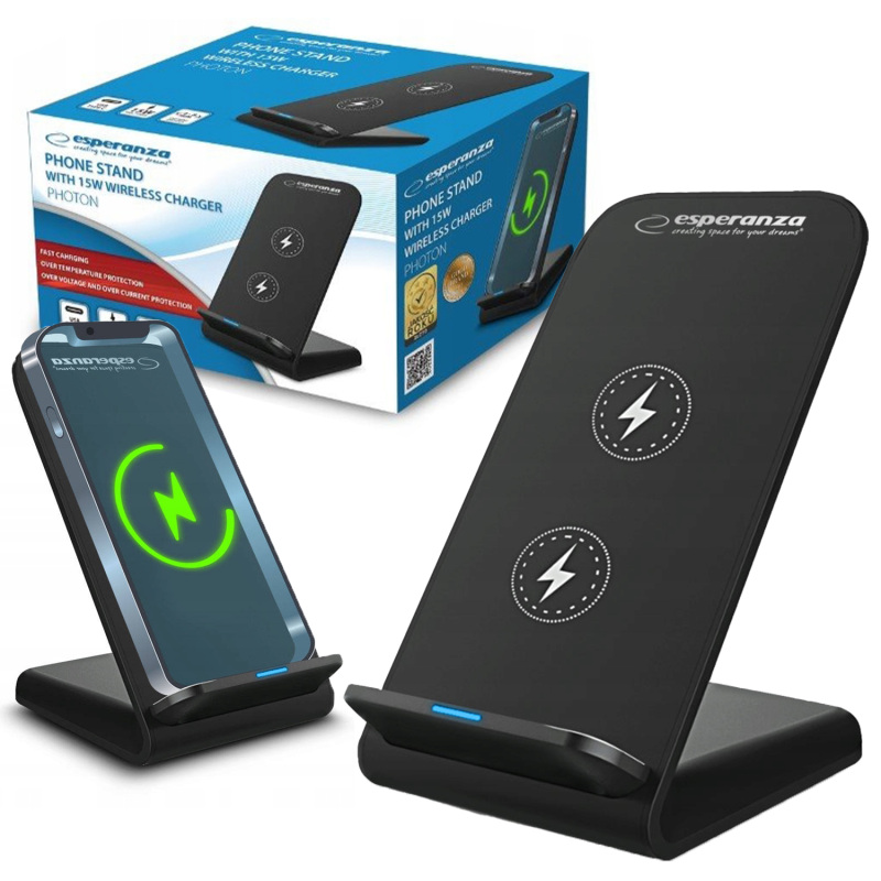 Stojak do telefonu z ładowarką bezprzewodową 15W Esperanza PHOTON EZC101