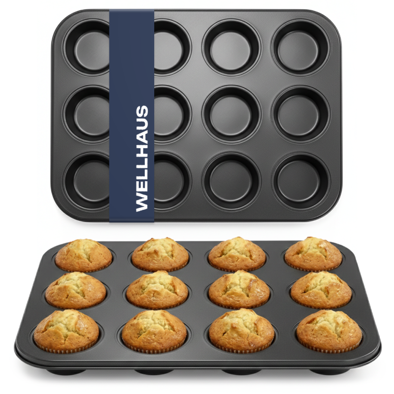 Metalowa forma do muffinek WELLHAUS pozwala przygotować aż 12 równych babeczek podczas jednego pieczenia. To praktyczne rozwiązanie, które oszczędza Twój czas i daje powtarzalne, estetyczne efekty – idealne do domowych wypieków, przyjęć czy słodkich niespodzianek dla bliskich.