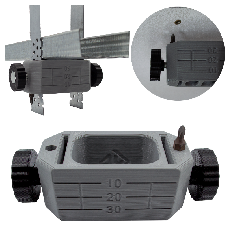 Skorzystaj z tego uchwytu do poziomowania sufitu, aby osiągnąć nowy poziom precyzji i efektywności podczas montażu. (Oferta dotyczy pojedynczego uchwytu do poziomowania, bez bitu.)