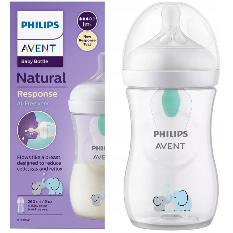 Ergonomiczny kształt butelki zapewnia łatwą i wygodną obsługę, nawet dla malutkich rączek. Można ją trzymać pod dowolnym kątem, co zapewnia maksymalny komfort podczas karmienia. Dzięki pojemności 260 ml jest odpowiednia dla niemowląt powyżej 1 miesiąca. Butelka posiada uroczy motyw ze słonikami.