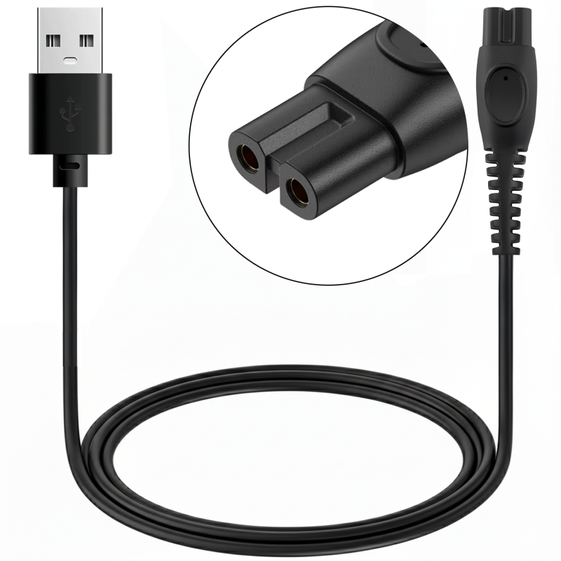 Standardowe złącze USB umożliwia podłączenie kabla do większości ładowarek sieciowych, powerbanków, komputerów czy ładowarek samochodowych. Dzięki napięciu 5V możesz wygodnie zasilać maszynkę w domu, w biurze lub w podróży, bez potrzeby korzystania z oryginalnej bazy ładującej.