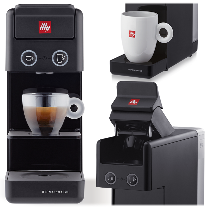 Ekspres kapsułkowy illy Y3.3 Iperespresso w czarnym kolorze to połączenie nowoczesnego, minimalistycznego designu z prostotą obsługi i doskonałym smakiem kawy.