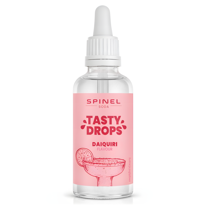 Tasty Drops Daiquiri to krople smakowe inspirowane koktajlem rumowo-cytrusowym, które nadają aromat napojom i potrawom. Wystarczy kilka kropli, aby wzbogacić wodę, herbatę, lemoniadę, mocktail lub deser o tropikalną nutę – bez alkoholu i bez dodatku cukru. Zawierają substancję słodzącą.