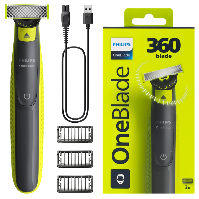 - W zestawie: trymer, 3 nasadki, ostrze OneBlade 360