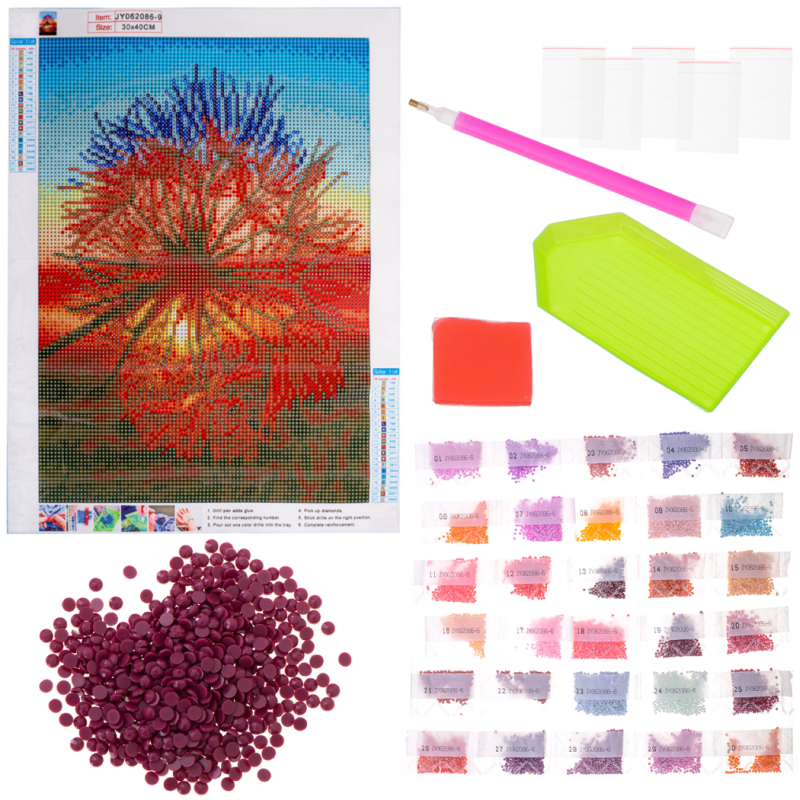 - Rozpoczęcie przygody z diamentową mozaiką jest naprawdę proste i nie wymaga zbyt wielu przygotowań. Wszystkie niezbędne materiały znajdują się w zestawie.