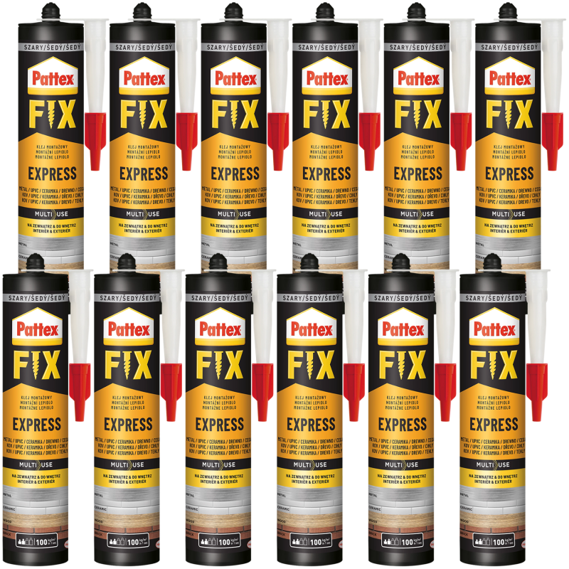 jest profesjonalnym, rozpuszczalnikowym klejem, charakteryzującym się wysoką przyczepnością początkową. Zastosowanie specjalnej formuły minimalizuję potrzebę podpierania i unieruchamiania klejonych materiałów. Klej Pattex FIX Express może być stosowany wewnątrz oraz na zewnątrz pomieszczeń.