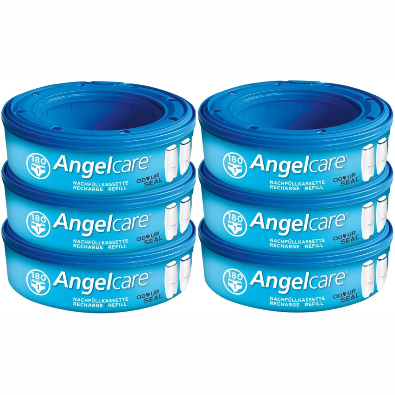 - ✅ Zestaw 6 oryginalnych wkładów Angelcare do pojemników na pieluchy