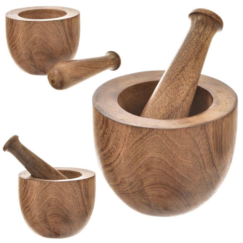 Moździerz drewniany z tłuczkiem z drewna mangowca