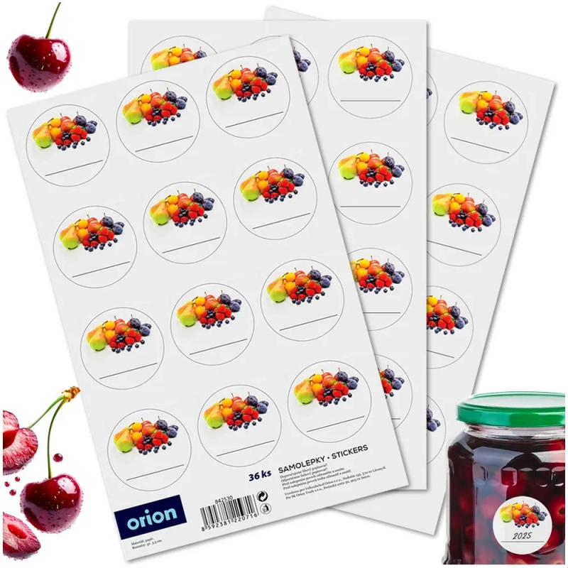 Zestaw 36 samoprzylepnych etykiet na słoiki to niezastąpiony pomocnik w każdej kuchni. Okrągłe naklejki o średnicy 3,5 cm wykonane zostały z laminowanego papieru i ozdobione estetycznym motywem owoców, co podkreśla domowy charakter przetworów. Przemyślana powierzchnia umożliwia łatwe wpisanie nazwy, daty przygotowania czy składu, zapewniając porządek i elegancję w Twojej spiżarni.