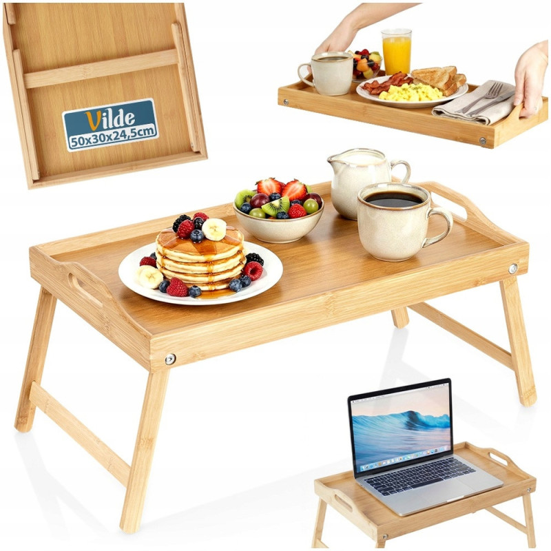 Stolik śniadaniowy, jest wszechstronny i usprawnia wiele codziennych czynności. Stolik umożliwi wygodne spożywanie śniadania w łóżku lub przekąsek podczas oglądania filmu na kanapie. Można wykorzystać go również jako miejsce do pracy na tablecie lub laptopie. Dzięki opcji składania zajmuje mało miejsca. Łatwy w utrzymaniu czystości. Oryginalny produkt marki Vilde. Wyprodukowano zgodnie z europejskimi standardami.