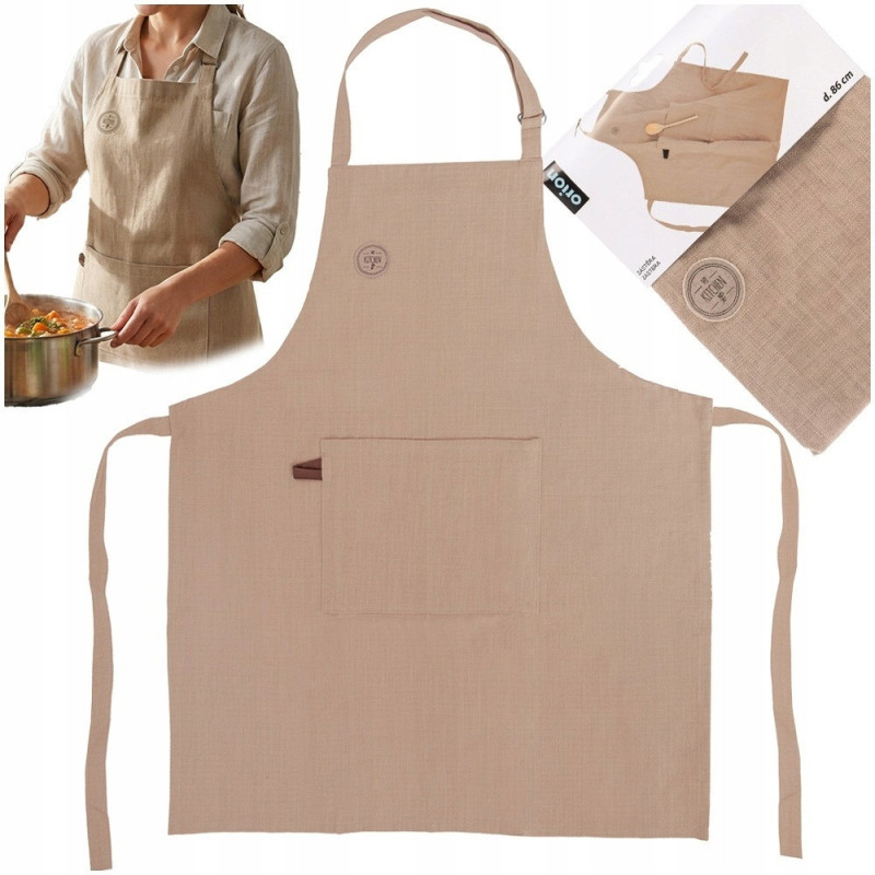 Bawełniany fartuch kuchenny w kolorze brązowym to praktyczne akcesorium, które skutecznie chroni ubrania podczas gotowania, pieczenia i grillowania. Uniwersalny fason oraz regulowane wiązania sprawiają, że fartuch wygodnie dopasowuje się do sylwetki i nie ogranicza ruchów.