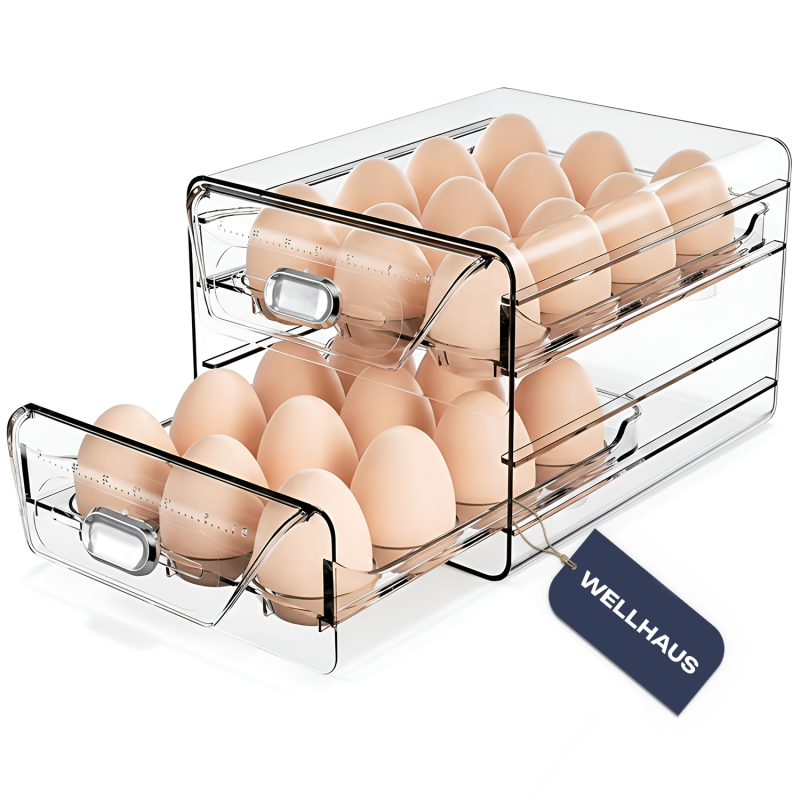 Organizer na jajka WELLHAUS to praktyczne i estetyczne rozwiązanie do przechowywania nawet 24 jaj w lodówce. Dwupoziomowa, wysuwana konstrukcja z przezroczystego tworzywa pozwala zachować porządek, łatwy dostęp do jaj oraz pełną kontrolę nad zapasami. Dzięki kompaktowym wymiarom organizer idealnie pasuje do półek lodówki, oszczędzając cenne miejsce.
