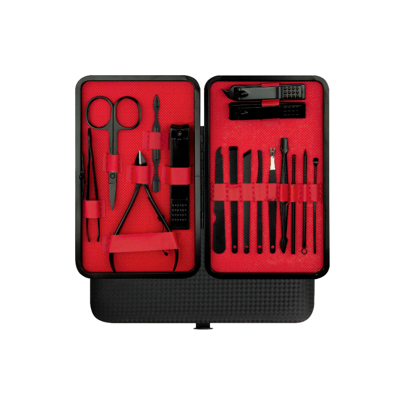 Zestaw do manicure i pedicure to komplet 16 starannie zaprojektowanych akcesoriów kosmetycznych zamkniętych w eleganckim czarno-czerwonym etui. Każdy element zestawu wykonany został z trwałej i hipoalergicznej stali nierdzewnej, dzięki czemu możesz cieszyć się precyzyjną i bezpieczną pielęgnacją dłoni, stóp oraz twarzy przez długi czas. To idealna opcja zarówno do domowego użytku, jak i na prezent.