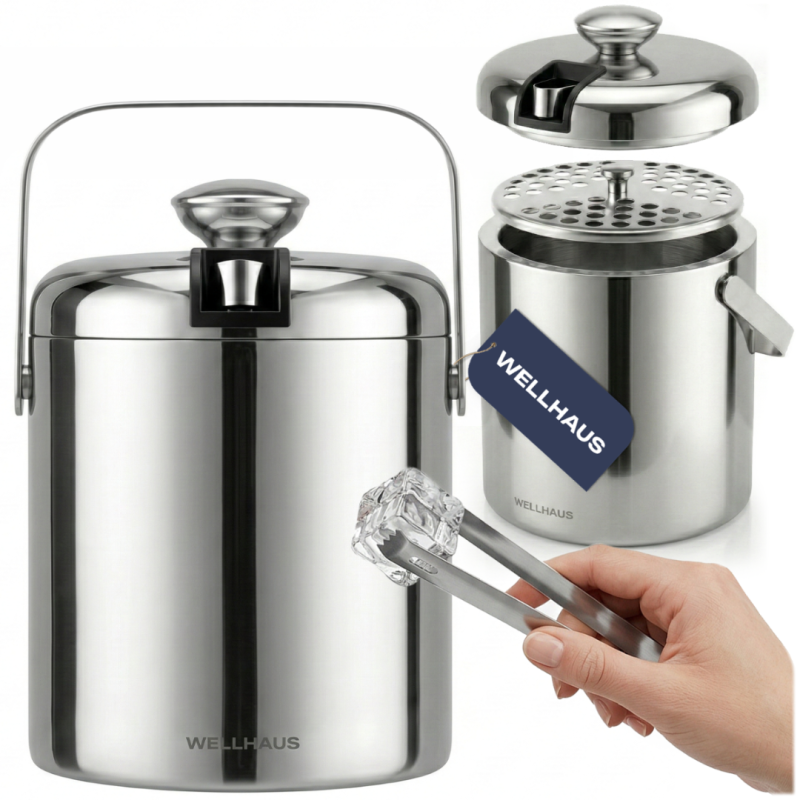 - Stylowe wiaderko do lodu Wellhaus o pojemności 1,3 litra to praktyczny i elegancki dodatek do każdej kuchni, domowego barku lub imprezowego stołu.