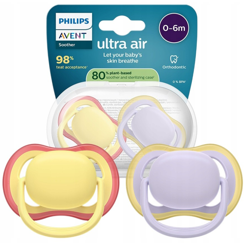 - 2 × smoczek Philips Avent Ultra Air Happy 0–6 m