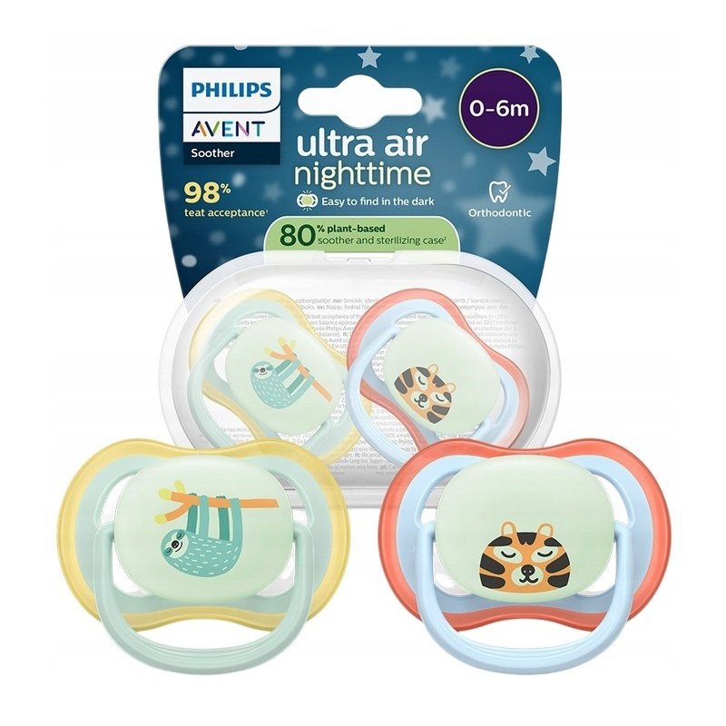- 2 × smoczek Philips Avent Ultra Air Nighttime 0–6 m