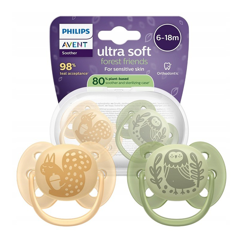 - 2 × smoczek Philips Avent Ultra Soft Forest Friends 6–18 m