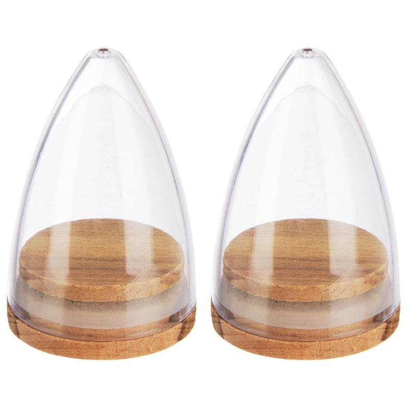 Każdy pojemnik został starannie wykonany z przezroczystego tworzywa, które umożliwia łatwe monitorowanie poziomu przypraw. Solidne zamknięcia z drewna bukowego wyposażono w silikonową uszczelkę, co zapobiega utracie aromatu i wilgoci, zapewniając świeżość zawartości przez długi czas.
