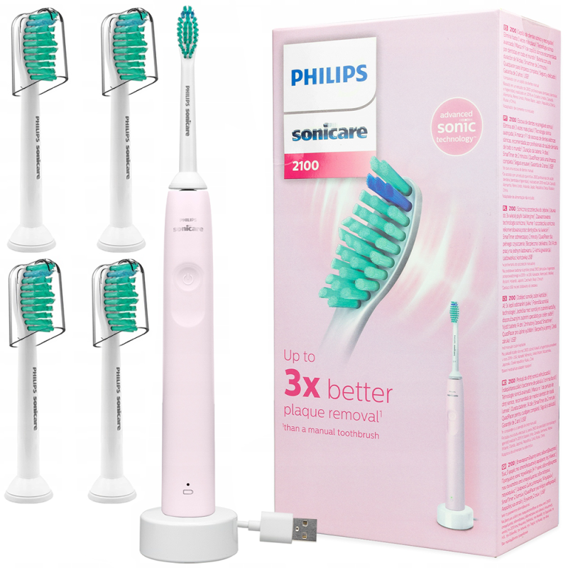 Technologia soniczna w połączeniu z oferowaną szczoteczką delikatnie usuwa płytkę nazębną do 3 razy lepiej niż zwykła szczoteczka.