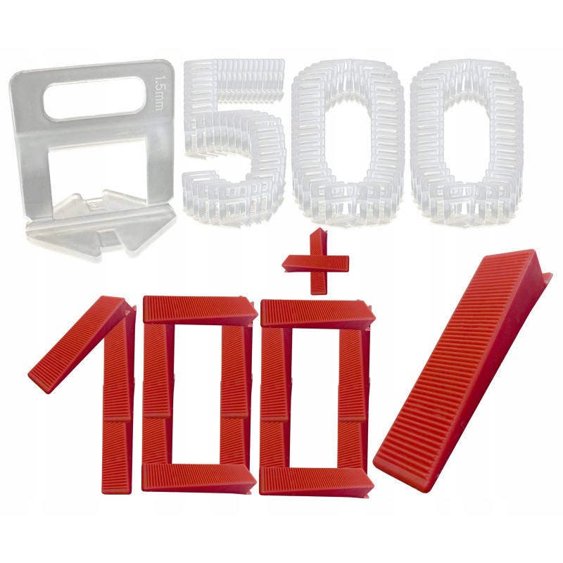 Klips do poziomowania płytek 1.5 mm (zestaw po 100 sztuk)x5 100 klin 25 narożników + Obcęgi