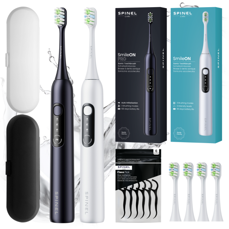 Poznaj wyjątkowy duet szczoteczek sonicznych Spinel Care – SmileON i SmileON PRO. Ten zestaw to połączenie dwóch nowoczesnych urządzeń zaprojektowanych z myślą o różnych potrzebach użytkowników – od codziennego szczotkowania po zaawansowaną pielęgnację zębów. Idealny wybór dla pary, rodziny lub dla tych, którzy chcą mieć jedną szczoteczkę na co dzień i drugą do zadań specjalnych.