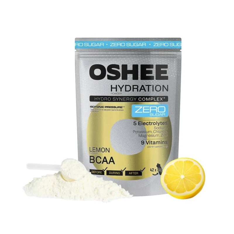OSHEE Hydration ZERO Sugar Lemon BCAA to zaawansowany napój nawadniający w proszku, opracowany specjalnie dla osób aktywnych fizycznie, sportowców oraz tych, którzy stawiają na efektywność i formę. Dzięki połączeniu elektrolitów, witamin i aminokwasów BCAA (L-leucyna, L-walina, L-izoleucyna), produkt wspiera organizm w trakcie i po wysiłku – poprawiając wytrzymałość, ograniczając katabolizm mięśni oraz przyspieszając regenerację. A wszystko to bez dodatku cukru, kalorii i niepotrzebnych wypełniaczy.