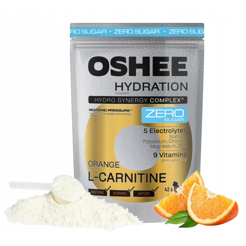 OSHEE Hydration ZERO Sugar o smaku pomarańczowym to zaawansowany napój izotoniczny w proszku, stworzony z myślą o osobach aktywnych fizycznie, sportowcach i wszystkich, którzy szukają skutecznego nawodnienia bez dodatku cukru. Wzbogacony o L-karnitynę, kompleks elektrolitów i witamin z grupy B, wspiera metabolizm energetyczny, zwiększa wydolność i przyspiesza regenerację po wysiłku. Zawarte składniki pomagają utrzymać prawidłową równowagę wodno-elektrolitową organizmu i ograniczają zmęczenie.