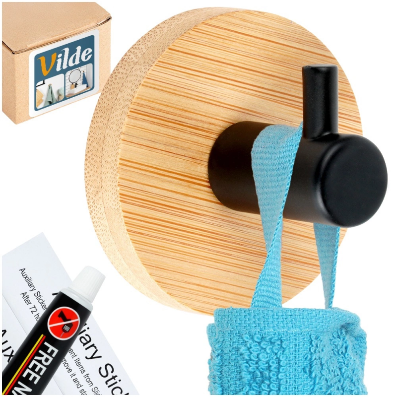 Haczyk ścienny bambusowo-metalowy Vilde – Stylowy detal do Twojego wnętrza Bez wiercenia, bez narzędzi – nowoczesne rozwiązanie do przechowywania