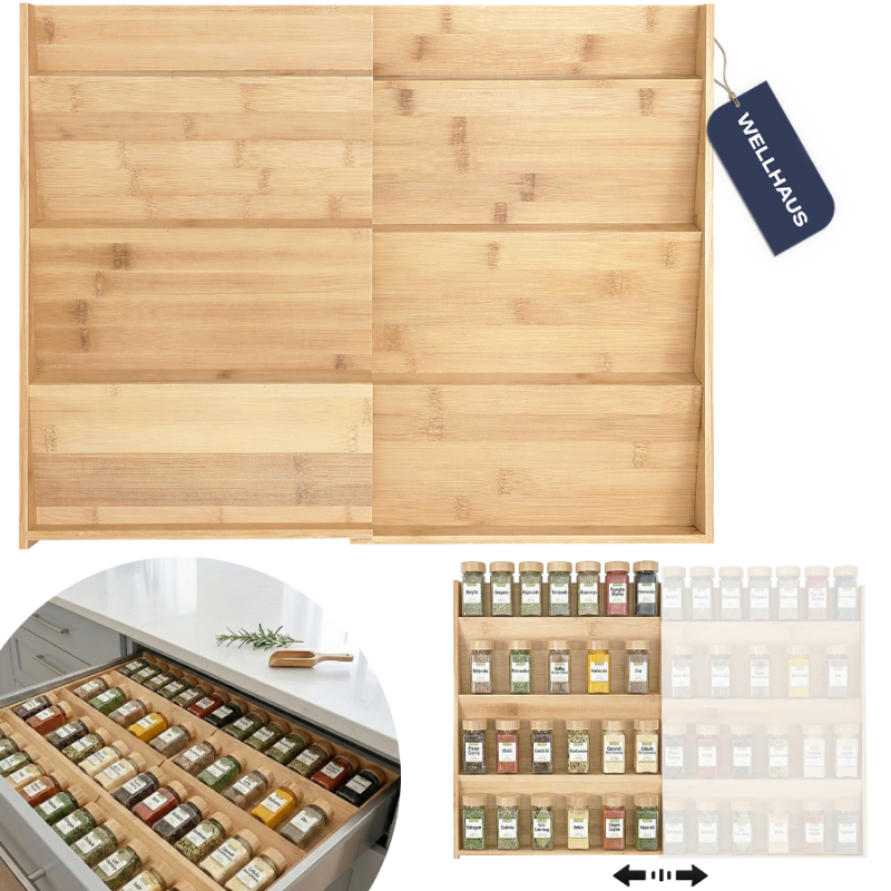 Wkład do szuflady na przyprawy bambusowy WELLHAUS – regulowany