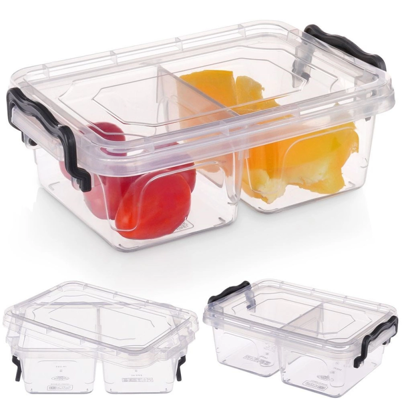 Pojemnik do przechowywania o wymiarach 16,5 x 11 x 5,5 cm i pojemności 500 ml. Wykonany z wysokiej jakości tworzywa w przezroczystym kolorze. Przezroczysta forma pojemnika pozwoli nam zobaczyć co jest w środku. Pojemnik jest niezwykle praktyczny, gdyż jest dzielony na dwie części. Może służyć również jako lunch boxa, w którym przeniesiemy ulubione przekąski do pracy, szkoły czy na wycieczkę. Zamykany za pomocą dwóch klipsów, które mogą również pełnić rolę uchwytów. Nadaje się do przechowywania w lodówce oraz zamrażarce. Wyczyścimy go w łatwy sposób, gdyż nadaje się również do mycia w zmywarce do naczyń. Oryginalny produkt czeskiej marki Orion. Wyprodukowano zgodnie z europejskimi standardami.