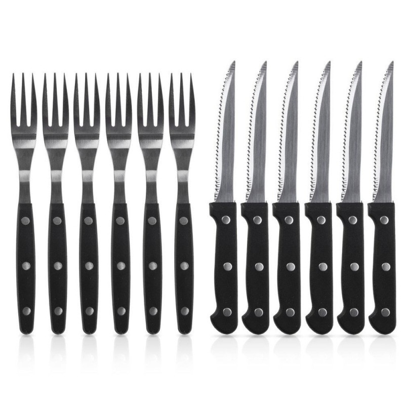 Zestaw obejmuje 12 elementów – 6 noży o długości 21 cm i 6 widelców o długości 19 cm. To doskonałe wyposażenie dla całej rodziny lub na spotkania ze znajomymi przy grillu.
