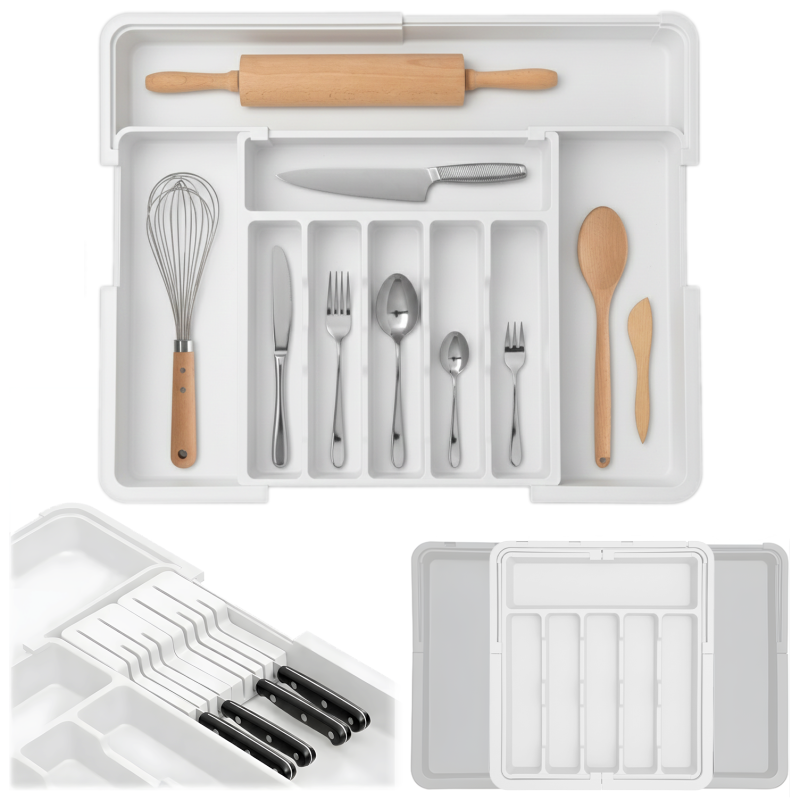 - ✅ Regulowany rozmiar – dopasowuje się do każdej szuflady